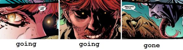 If Abby is becoming the avatar of death, what the hell is happening to William? Whatever he’s turning into, I love it. Throughout this issue, his face darkens and distorts until he becomes this totally twisted sister-licking monster. There are a lot of upsetting images in this issue, but this transformation takes the cake for me.