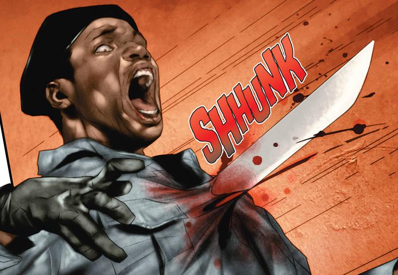 The claims of exploitation are not unfounded, but it does seem a little harsh. On the one hand, it can feel like DC is mining global atrocities for personal gain, but on the other, it is admirable that they’re bothering to present an African superhero at all. Also, for all the talk of torso heaps, they only really appear in the first issue – after which, Massacre seems more singly focused on his mission of killing off The Kingdom.