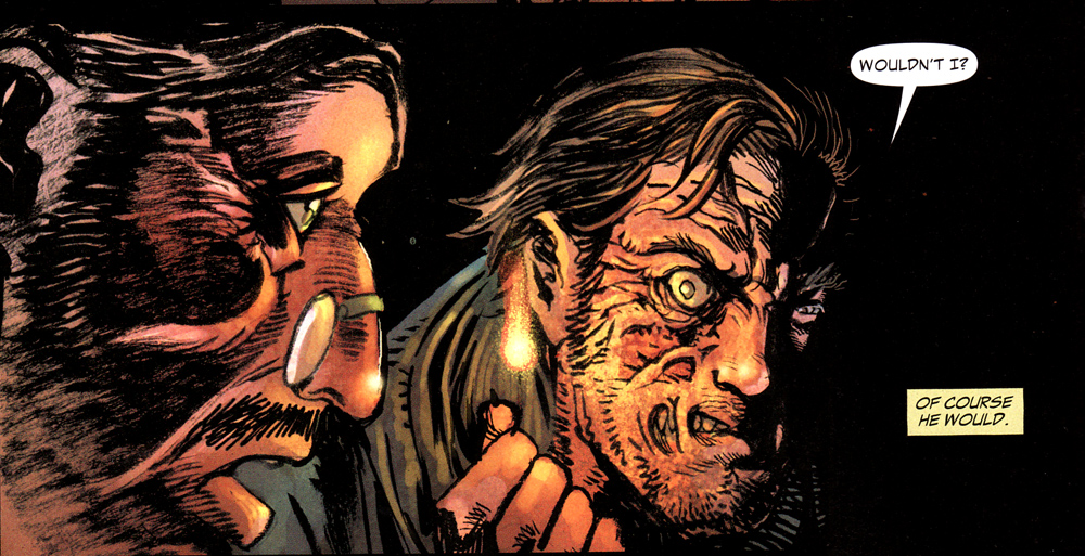 Hex is no different in these issues. Even though he originally takes this job for the fifty thousand, it appears that he actually develops a strong desire to do what is right. At the end of issue 6, he is willing to pursue Moody to New Orleans, mainly to get the money that he is owed, but I also think that he wants to do what is right by the children. Hex has a troubled childhood of his own, with his father selling him to Native Americans, and this may hit close to home for him.
