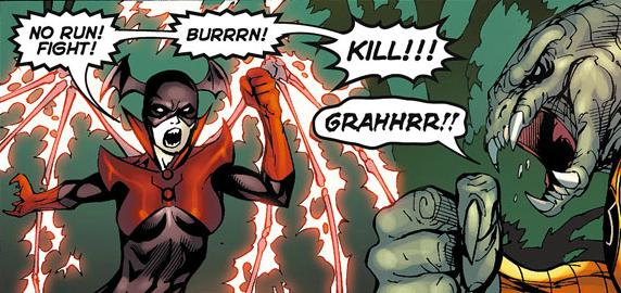 Patrick: It’s a common chorus – especially when you and I start talking about comics – but GOOD GOD DAMN COMIC BOOKS, stop it with the T&A nonsense. There’s more than just Fatality to complain about (like Bleez’ ever-present thighs and ass), but I’ll register the complaint, wag my index finger and the creative team and move away from it.
