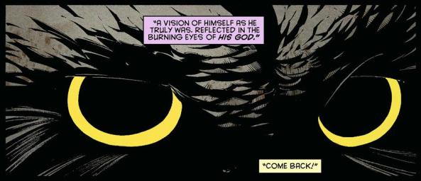 I’m stuck on the art here, but just stay with me. The inking also deserves mention. Capullo delivers an insane level of details in his pages and I do not envy Jonathan Glapion’s responsibility to decide how much of that detail to hang on to. He makes impeccable, dramatic choices that fire on all the same cylinders that everyone else is firing on. This is really an example of no weak links in the creative chain. Dig the brooding owl from Bruce’s near-death experience:
