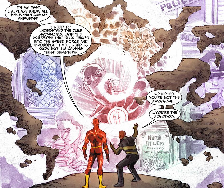 The day his mother died, his father in jail for the murder, getting struck by lighting and being doused with chemicals – that’s his whole origin story is one panel. Previous Next