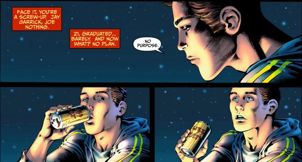 Historically Alan goes on to become the original Green Lantern. It would be very interesting to see how these character traits will play into his role. Similarly, the new portrayal of Jay Garrick (who goes onto become the Flash) comes off a little emo as he broods on a hill, drinking a beer, lamenting and wishing on stars.