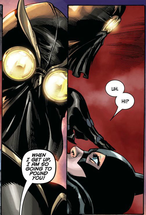 Drew: As a crossover event, the Night of the Owls is pretty rigid in what it requires of its participating titles. Namely that the hero(es) 1) receive Alfred’s APB, 2) rush to protect one of the target on the hit-list, and 3) battle at least one Talon in order to protect said target. Those strict guidelines run the risk of getting old rather quickly, as they are repeated in about a dozen titles in a single month. It’s credit to writer Gail Simone that she managed to wrangle and subvert those guidelines into a compelling narrative, though doing so left little room for that signature Babs wit we’ve come to love from Simone’s writing.