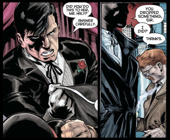 Now, maybe the similarities in their clothing is some kind of uniform, or is just meant as a hint that this person who just spoke to the Commissioner is part of the Court, but what if it’s the same guy? The Court can make their Talons live on indefinitely, so why not other agents and/or members? I don’t know what that guys story is, but now I want to know.