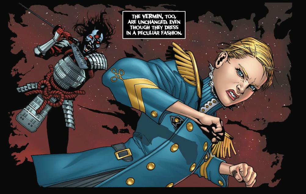 I actually do no recall this particular rant on twitter – even though I LOVE Foreman’s twitter rants. The color issue just really struck me in this one: there’s something really artificial about the gradient work on Katana’s armor that bothers the hell out of me. There are other examples too, but it seems the most blatant there.