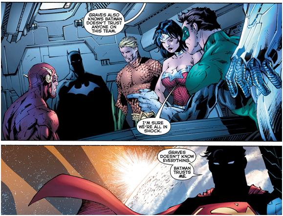So that’s The Villain’s Journey. We don’t have a lot of information about Graves, and Geoff Johns’ attempts to sprinkle the pages with characterization have left more questions about the character than answers. We talk a lot on this site about how we prefer mystery to blatant exposition, but teasing out this “the Justice League killed my family” thing is getting tiring. And the inevitable reveal that Graves’ family was killed as some collateral damage when the League was performing some other good is going to be underwhelming as shit. There’s no way they intentionally killed people: at the very worst, they chose not to rescue a small group of people so they could save tons more lives. Zach, did you read Batwing? They did something similar there with “The Kingdom” – a group of African heroes that failed to provide support to rebelling citizens because they made a deal to eventually end the conflict. So some people were really pissed at them, but like, they did end the conflict, so ultimately they made the right choice.