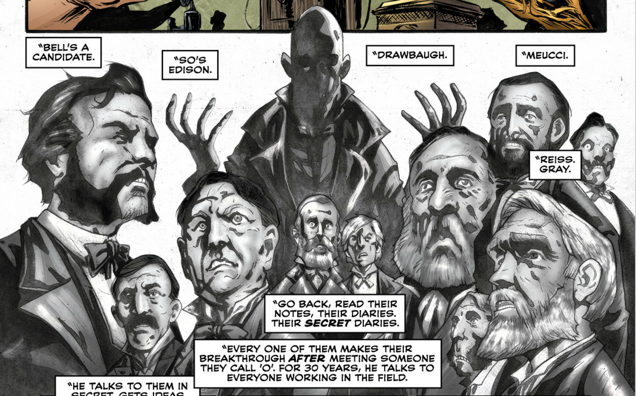 I find it incredibly cool that there was this mysterious man who gave famous inventors their best ideas, and that telephony is a byproduct of what he was trying to accomplish. I like it when comic books connect to history and historic figures in new, usually supernatural ways. (If you happen to like those books too, check out Hickman’s S.H.I.E.L.D. printed by Marvel – it’s superb.)