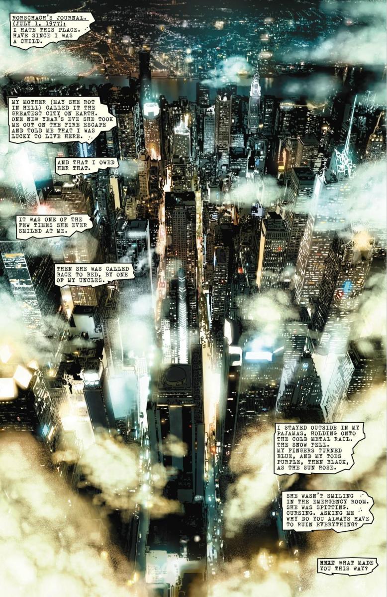 Rorschach’s face in the clouds above NYC