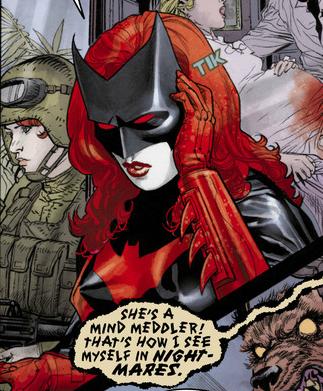 • Yeah I definitely saw the Marine-Kate Kane to be a sort of lost opportunity. At the very least, it’s something she was passionate about that was taken away from her. I think it’s telling that it feeds right into the sexy-vampire perception of Batwoman: there’s definitely a fear that in spending her life fighting monsters, she’s becoming one. First step to that is the bit of humanity she has to sacrifice in keeping secrets from Maggie.
