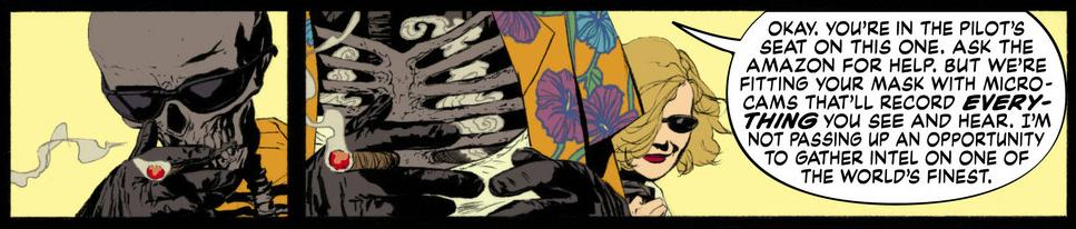 (In the pre-reboot continuity he was originally a villain named Mr. Bones, and at one point he used his ability to kill a hero named Sylvester Pemberton, the Star Spangled Kid, who was a member of Infinity Inc., the children of the JSA. At one point in the 2000’s JSA series, once Bones has already become a DEO agent, he makes a casual threat to the JSA and starts idly pulling his glove off as he does so)