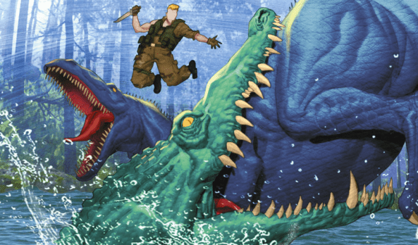 I like this title. It’s an action-y, fun read; I like it for a lot of the same reasons I used to like Deathstroke. The two are very similar, actually: elite, meta-human supersoldiers with tragic histories who just want to do what they do best. The major difference is The Unknown Soldier is grounded in my reality, which adds a little more depth to the story. I’ve also never read a title set up with multiple stories within the book; it’s something new, and I like it. I’m glad I got Jurassic Parked into reading this title; if I wasn’t so intrigued by the dinosaurs, I never would have picked it up. Lawton, what do you think? I don’t know what kind of experience you have reading comics, where the soldiers and dinosaurs enough to keep you entertained?
