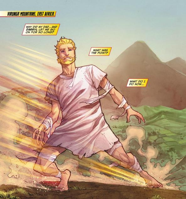 Less is explicit is that Barry spends the rest of the issue reconstructing his life as he best sees fit. He builds the costume, comes up with a insignia for his chest, even toils over a name (it took him “forever” to come up with Flash). But Barry’s also free to make the choice that he’s going to continue to investigate his mother’s murder. He reiterates the words of his adopted-father to his real father: “People lie… but the evidence… that doesn’t.” Barry still wants to prove his father’s innocence, but it’s no longer an obligation. It’s a wonderful affirmation of the character’s agency to state that he’s not a victim of circumstance, no matter how shitty those circumstances might have been.