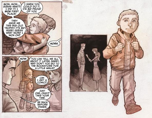 He’s just such a sympathetic character. And it’s wonderful to see him surrounded by normal people who care about him. So much of the series has been about what it means to be the Fastest Man Alive, but this might have been the first issue about what it means to be Barry Allen.