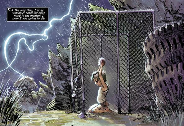 Calvin was abused by his father when he was a child because what’s a superhero without daddy issues. Papa Rose’s preferred method of abuse is locking his son in an outdoor kennel overnight during a thunderstorm (classic). But Calvin escapes this cage and stumbles into Haly’s Circus. Haly’s is always accepting runaways, so lil’ Calvin becomes a master escape artist. One day, a man from the mysterious Court of Owls appears and Calvin puts on a private escape-show for him. Sufficiently impressive, Calvin begins his training/indoctrination into the Court. This is your typical superhero training stuff: fighting, sneaking, target practice, futzin’ with technology. BUT the final stage in all Talon training is a fight to the death with a previous Talon in a giant subterranean maze. Calvin’s able to defeat his opponent, and escape the maze (much to the Court’s surprise). Now a fully-fledged Talon, Calvin goes out on his first mission: end the bloodline of the Washington family. But when he arrives at the Washington household and discovers that his marks are a young mother and her two-year old daughter, Calvin bails on the mission and on the Court of Owls in general.