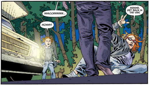 This is another ballsy element Lemire seems to be taunting us with. We already know the fate of Buddy’s entire family, which runs the risk of robbing these sequences of their drama. But of course, with Lemire, exactly what happens takes a backseat to how it happens. Knowing what happens down the line doesn’t deflate any of the fear and determination we see in Ellen when she needs to find her son, or any of the abject terror we see in Maxine when her only remaining parent is in mortal peril.