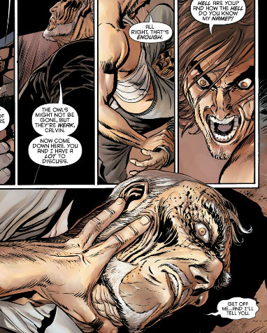 Calvin, not to be outdone, is sporting both the crazy eyes AND angry mouth.