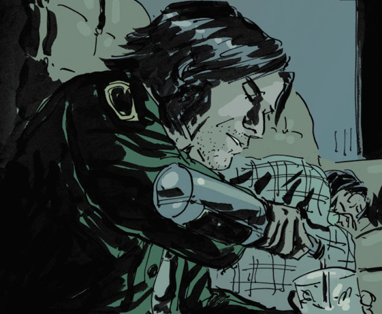 Take Foster. As Shelby notes, his relationship with his son is almost identical to the one he had with his own father — illustrated with surprising effectiveness in near-identical sequences: one in issue 1, the other in issue 5. But long before we learn about Foster’s relationship with his son — hell, long before we learn that he even has a son — we see how Foster’s guilt over becoming his father changed his behavior.