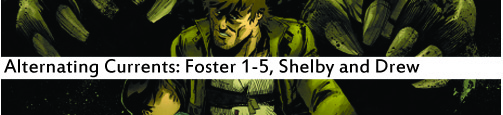 Drew: Shelby’s right: we don’t review every title we read, but because of the rigors of our reviewing schedule, we don’t always get to devote the same time to unpacking those other titles. That works just fine for more plot-driven titles like Saga and Daredevil, but for a title as dense and atmospheric as Foster, closer readings are paramount to really appreciate what’s going on here. Buccellato is especially gifted at crafting rich, detailed characters and smashing them into each other in surprising ways.