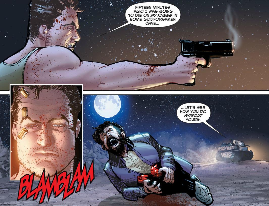 Drew, I don’t think Tomasi’s trying to make a point about the occasional cruelty of American soldiers. It totally reads like its an empowering moments for the character, even if the reader is horrified while it’s happening. I hate trying to infer the intention of a writer (because the content SHOULD all be on the page), but this reads as tone-deaf.