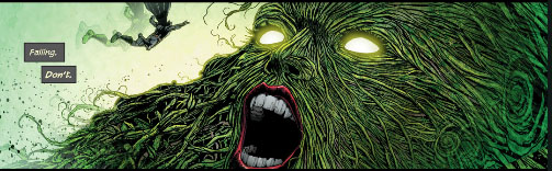 • I actually needed the backup, mostly because — for whatever reason — I didn’t recognize Clayface as Clayface. I thought it was some kind of swampy monster Ivy had made as her own protector. Tapping the rogues gallery for her army of brainwashed goons makes a lot of sense, and seems like a natural way to incorporate more baddies into the story. Ultimately, Shelby is right — the backup doesn’t show us anything that couldn’t have been effectively illustrated in a line or two of dialogue in the next issue — but I saw it more than a waste of space (and my dollar!) than as a nullification of the cliffhanger. We’re going to get the explanation next, either way, and I have no problem getting it sooner rather than later, I just wish there was a reason to show it at all.