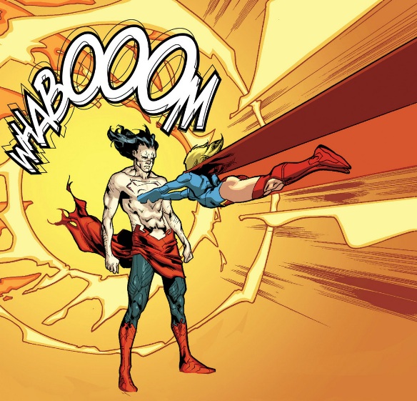 And, Drew, you point out that there’s no reason H’el would need to be a villain to convince her to go back in time to save Krypton. But, like, he should be able to appeal to Superman for help the same way. Why wouldn’t Superman agree to save his own homeworld from destruction? There is more to H’el’s motivation than we’ve been presented with, right? Otherwise, he’s just not a threat. Maybe he’s not the villain of this cross-over event after all. His evilest action so far has been toward Superboy, which more of a left-over from centuries of Kryptonian racism than it is outright evil. My guess is that he jumps right to punching, etc. because he’s got this insane new power thanks to that yellow sun. Plus, y’know, he makes the case on a couple of occasions that he’s actually on Kara’s side. We don’t trust him because he looks all fucking crazy (and we don’t trust aliens).