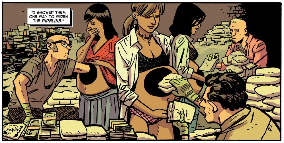 I don’t totally get what’s going on here – like, are those holes leading to other exist holes somewhere else, or are they just putting those drugs right in there with the baby… it’s all very upsetting. Next