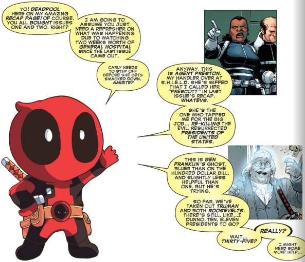 Many panels later, after Deadpool has taken down a dead prez, we get this scene.