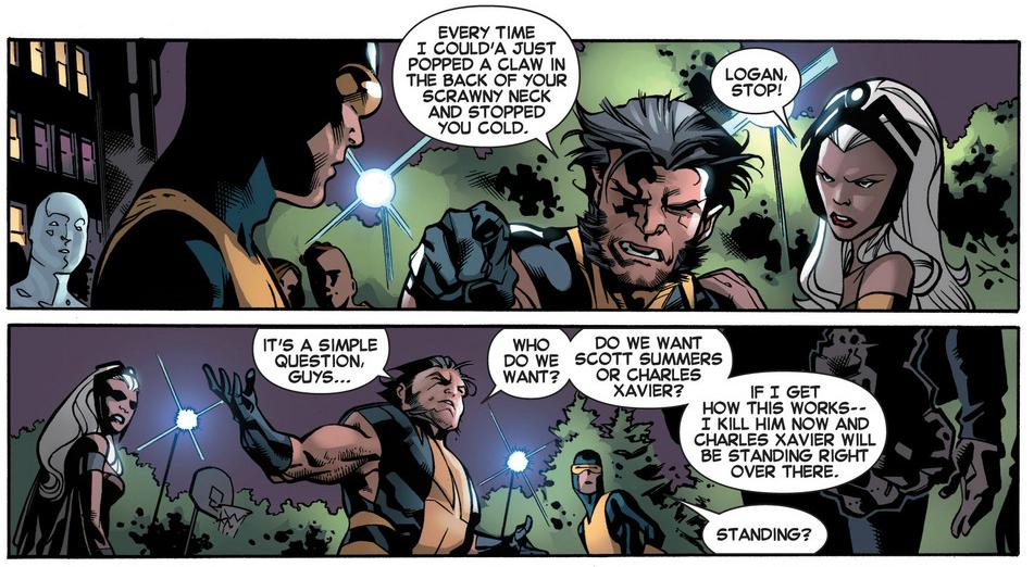 Wolverine treatens to kill young Cyclops to bring back Charles Xavier