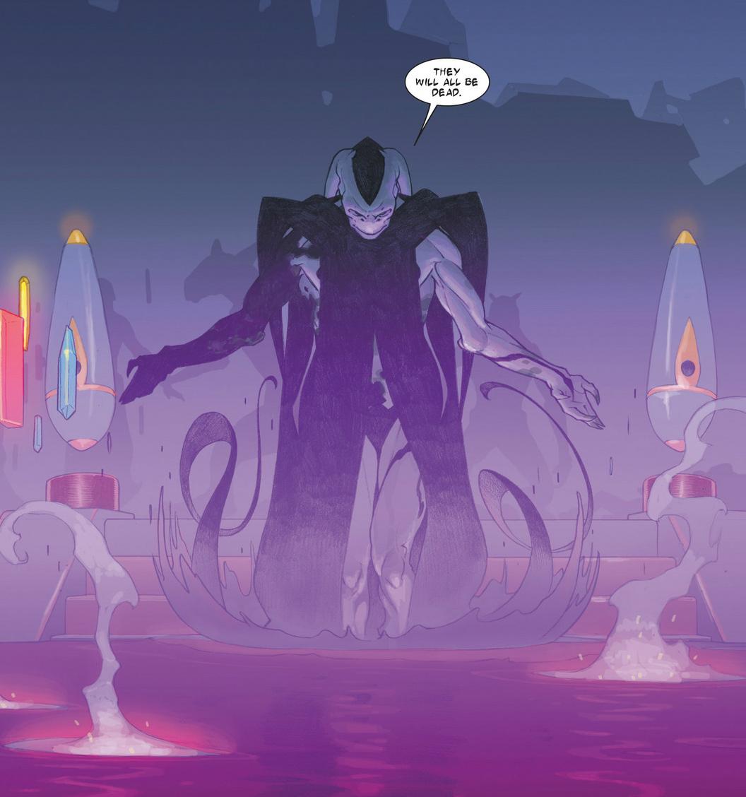 Aaron does add a wrinkle in the story of that planet Thor visits where all the gods have been killed. Because the god of rain is dead, the planet has suffered a drought that only Thor can help alleviate. I don’t know where that fits with all of this (and, actually, I’m not sure it really affects my enjoyment of this series), but it kind of refutes Patrick’s suggestion that those elemental forces continue even without their patron god.