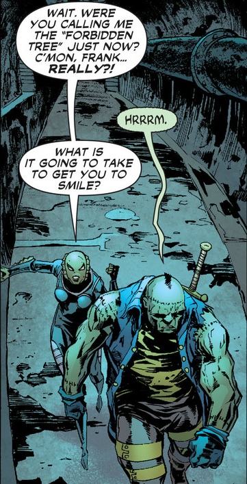 It’s weird that this is the issue that confirms that Rotworld pretty much never, happened, right? Like, I can accept that it’s maybe some kind of shared hallucination between Swamp Thing and Animal man, and that they’re really just in the rot, but then why was Frankenstein pulled into it. That is to say, while there are other cameos, nobody else’s titles have actually acknowledged the event. That lends credence to the “it never really happened” theory, but then it’s weird that Frankenstein does acknowledge Rotworld. A kind of “it thinks therefore it is,” if you will. Point is, whatever resolution that magics away Rotworld in Animal Man and Swamp Thing should also need to happen to Frank, right?