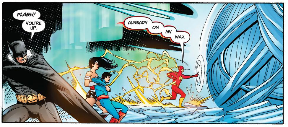 Batman Wonder Woman Superboy and Flash break into the fortress of Solitude