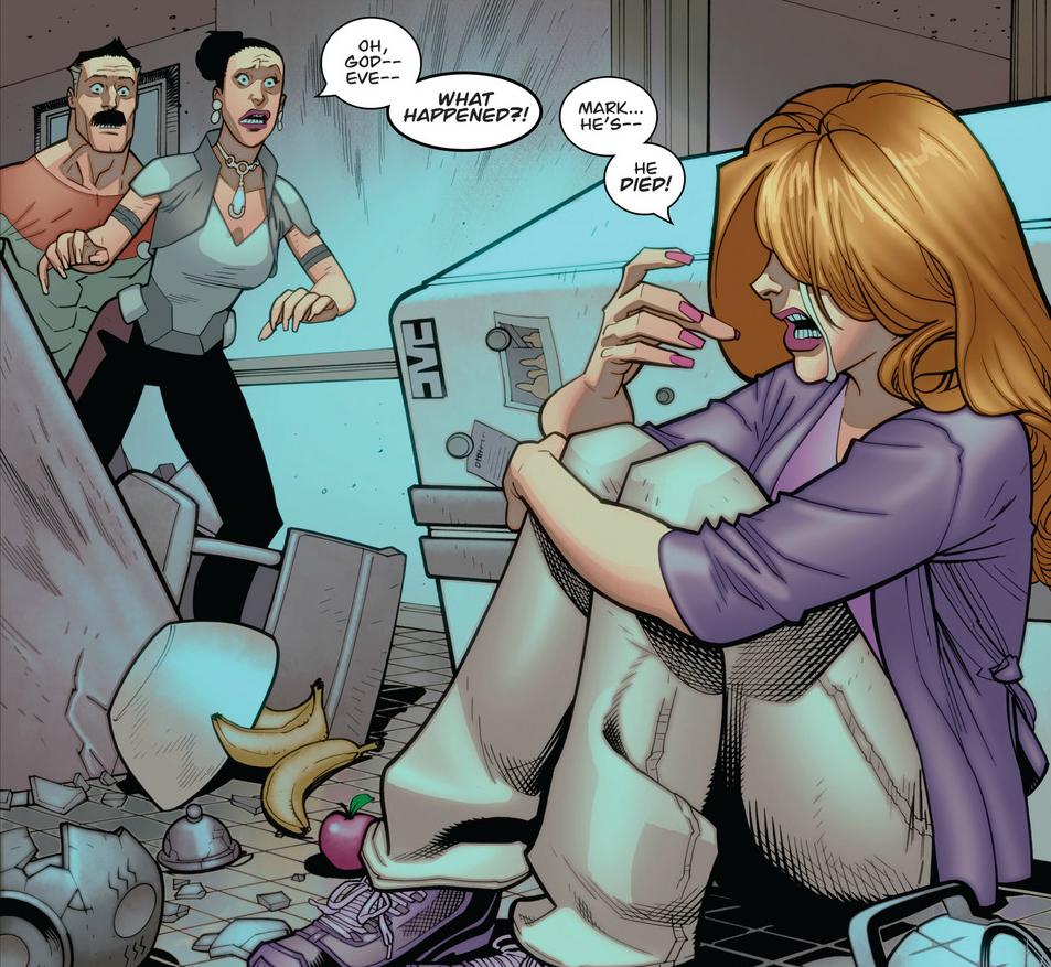 Hey, I made an assumption right there: Atom Eve is a superhero of some kind, right? And their friends from space… superheroes, too? Wait, are they Mark’s parents? No, I won’t look it up.