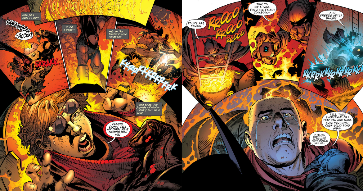 The whole creative team has done a superb job in capturing Damian the Bat and Damian the Kid. This is something that consistently impresses me with this title. The image Drew posted of Damian in the Batcave is perfect. On the one hand, he’s doing science in the Batcave. On the other hand, when the sun goes down he’s like a kid on Christmas morning. The juxtaposition of these two sides of Damian make him such a compelling character, and in turn make Damian and Bruce’s ever-developing relationship that much more compelling as well. I feel like this might be blasphemy, but I very much prefer Damian and his relationship with his dad as depicted here in Batman & Robin than in Batman, Incorporated. Just don’t anyone tell Grant Morrison I said so.