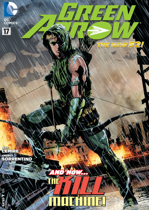 • I’m going to disagree with both of these, while at the same time validating the latter’s opinion as such. As a writer you can’t have a character be the best and have the story merit anything. There always has to be someone better of just as good, because one could just say, “Wow that villain is pretty cool, but Ollie’s an awesome archer and will win in the end, so I probably can skip ACTUALLY read it.” When you see a character struggle or aspire to be better, it makes you the reader want to see exactly how they do it. Why should we get “[delivery] on it here and now?” What’s the point of reading anything if you get what you want immediately? And as for trite? I would say that Oliver Queen from Sept. 2011 to Jan. 2013 would fit that description, no arguement. With #17 we only see the very beginnings of who the character is going to become, but trite is most certainly not an adjective that’s applicable. Perhaps down the road, but this iteration of Ollie is razor edged and returns some of the hunter acuity to his thoughts and actions. Again, one can’t make an accurate comparison between one issue of a revamped Ollie vs a years developed Clint Barton, but trite can just as easily be applied to several of the versions that Marvel has put out of him.