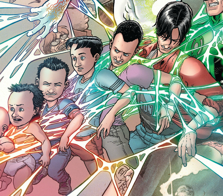 Just like with the rest of the gang, Volthoom is messing with Kyle’s mind by either showing him alternate realities or by actually Altering Reality. Volthoom is especially interested in getting a rise out of Kyle, whom he considers to be as “emotionally evolved” as he is. Unlike Guy and the rest, however, Kyle is able to remember his actual reality: he sees Alex alive again, has a lifetime spent with his father, he even sees a world destroyed by Sinestro after he was unable to properly fill Hal Jordan’s shoes. Through it all, Kyle remains a White Lantern. Volthoom is disappointed, but still sees Kyle as a tasty, little emotion appetizer that he can snack on until he’s strong enough to actually alter reality and make it stick.