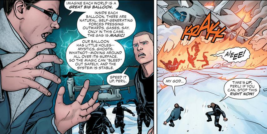 Dr. Peril explains what’s happening in Nanda Parabat to Steve Trevor