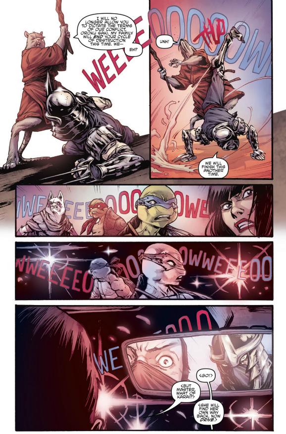 Ninja Turtles, Splinter, Alopex and Shredder stop fighting because the cops are there