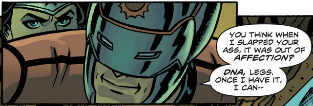 That’s not to say Azzarello never clears things up. A few fans were up in arms about Orion’s “go get ’em, tiger” ass slap last month, but Orion explains the method to that madness in a way only he could.