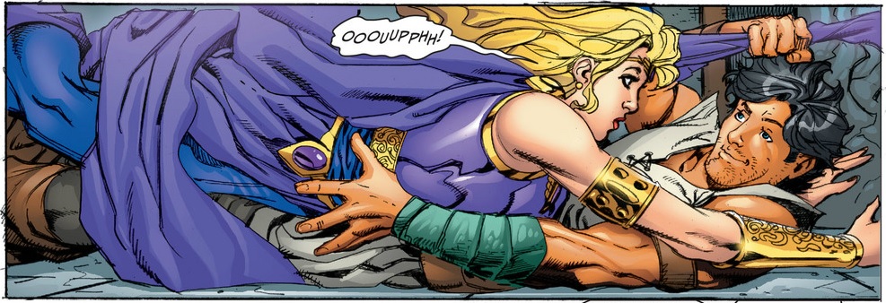 Also hey, Constantine makes an appearance in this issue! Big surprise here is that he acts like a jerk the entire time. Oh wait, that’s what he’s known for, never mind. Usually I’m a fan of Constantine being a jerk, and my reasons for that are closely aligned with what Shelby had to say about him in her review of Constantine 1. However, in this issue of Sword of Sorcery Constantine is being a dick for apparently no other reason than to thrust his problems onto somebody else. While this isn’t surprising in any huge way, it seems a bit too shallow, even for Constantine. His justifications for his actions in this instance just don’t ring true to me, which certainly seems like a missed opportunity for character development. However, seeing him use the Magical Spy Mirror like a glorified iPad while holding a crystal that looks like a purple dildo is pretty entertaining.