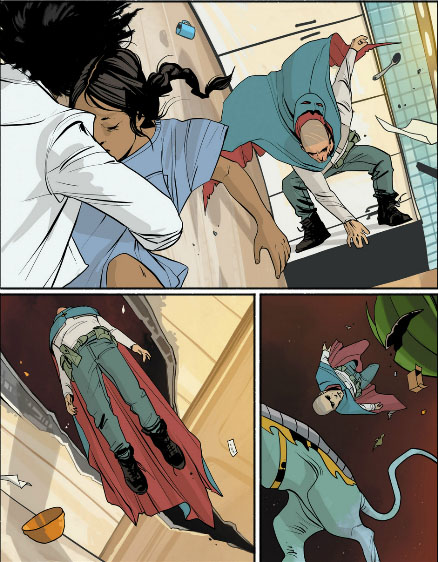 I could gush about this title approximately forever, so I’m going to turn things over to our guest writer. What do you think, Suzanne? Are you able to grasp the larger themes running through this issue, or are you also too wow’d by how great it is? Were you, like me, on some form of public transit when you were reading it? I have to say, I was not prepared for that super sexy first page, and had to flip past that while on the train.