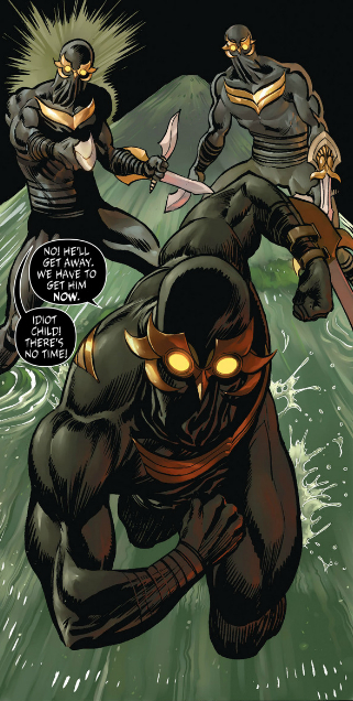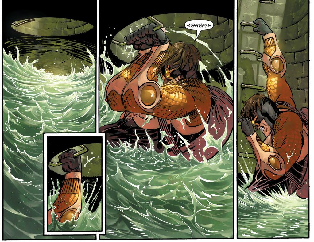 Calvin Rose starts the issue in a cage, surrounded by three generations of O’Malley Talons. Those suckers don’t realize that “in a cage” is about as dangers as AN ESCAPE ARTIST can be, so they’re easily overpowered as Calvin makes a break for it. The youngest O’Malley — ready to prove his mettle — chases after Calvin, even though it means navigating the cavernous sewers of Securitus Island, which are rapidly filling with ice-cold water (reminder: frozen temperatures are Talon Kryptonite). When the youngest O’Malley catches up with Calvin, they fight for a second, but then Calvin does something interesting: he asks the Talon to help him. We don’t get to see the end of that conversation, and the next time we see Calvin, he’s unconscious and draped over the Talon’s shoulders. The O’Malleys take Calvin to John Wycliffe — the so-called Grandmaster of the Court. Wycliffe tells Calvin that he’s been working for the Owls the whole time because Sebastian Clark is the former Grandmaster. Then Wycliffe drops the mic and struts off stage.