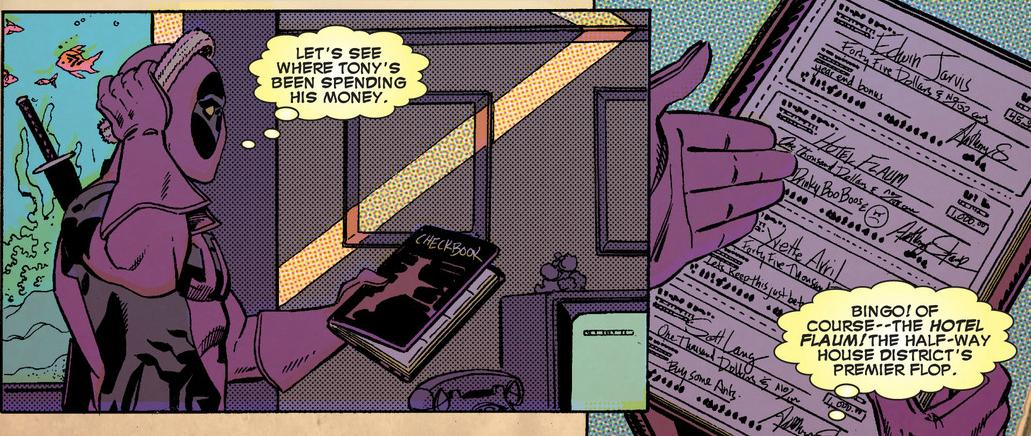 Deadpool reads Tony Stark’s checkbook