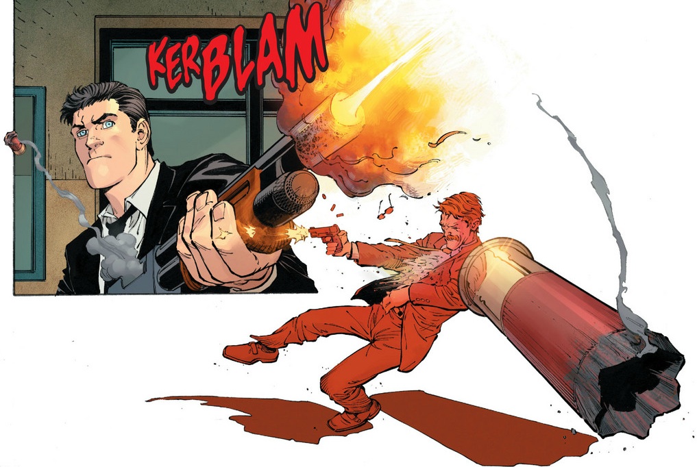 2. One of the things that caught my eye in this issues was the use of white backgrounds (like this image above of Gordon being shot) and I realized that’s because a large chunk of this issues takes place during the day.