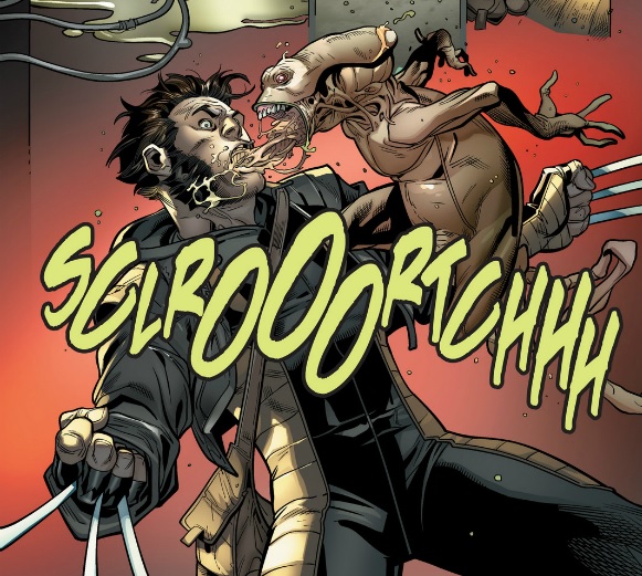 Of course, these unexpected events aren’t just limited to a flying car – that would be far too simple. Once inside the S.H.I.E.L.D. base, Wolverine inadvertently frees a Broodling because he thinks it’s cute and is being tortured. This is a pretty expected move on Wolverine’s part since he doesn’t seem to give a damn about the butterfly effect – we shouldn’t be surprised to have seen this. However, he then is impregnated by this brood with a quick “sclroortch” and has to casually impale himself to extract the young from his stomach.