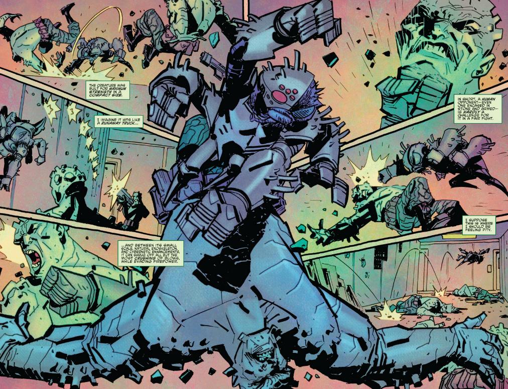 Flyborg beats up a rock soldier