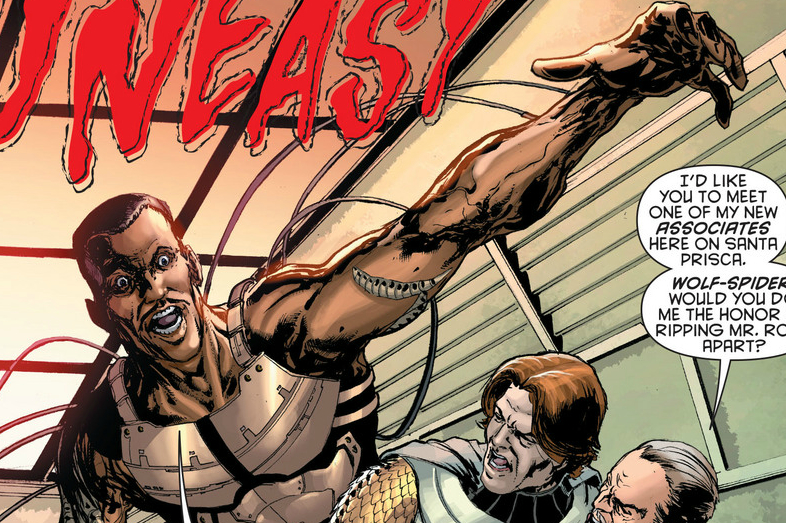 Spencer: Wolf-Spider is indeed messed up! By this point I’m used to characters with freakishly long arms, but what’s really scary about this guy is the fact that he looks like the love child of Vincent Price and Sinestro: