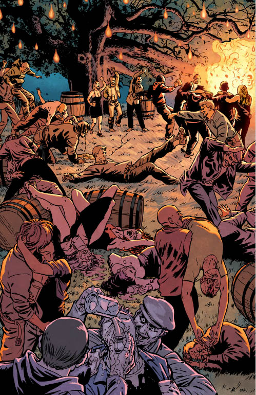 This story-line is a perfect example. Patrick and I saw Soule at a DC panel at C2E2, and the big teaser he gave us for Swamp Thing’s future was “whisky tree.” Even though I was intrigued by the idea, I have to admit I was more than a little skeptical. It sounded so…whimsical. There’s not anything necessarily wrong with a little whimsy, but it wasn’t what I had come to expect from my dark and horrifying Swampy. Leave it to Soule and Kano to completely demolish any whimsy one could find in the idea of a whisky tree in rural Scotland.