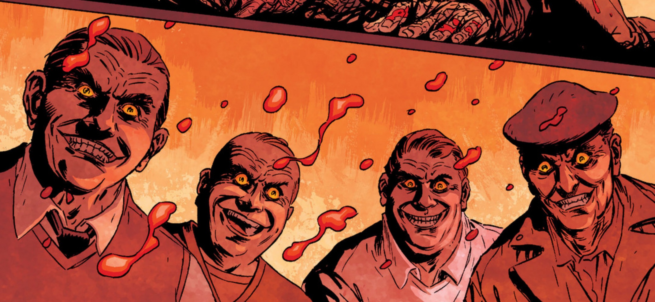 This issue also saw Kano returning to artistic duties. Kano created beautiful pages full of rural Scottish scenery, interrupted by a completely bonkers episode of utter horror right in the middle. If you, for some reason, have not read this issue yet, go flip to the middle of it right now. I’m telling you, it’s INSANE. There’s no way I thought that was happening in this issue, based on the first ten pages. The art really puts that sequence over the top for me. It’s jarring to see someone’s head literally getting stomped-in, though it’s those evil eyes that will give me nightmares.