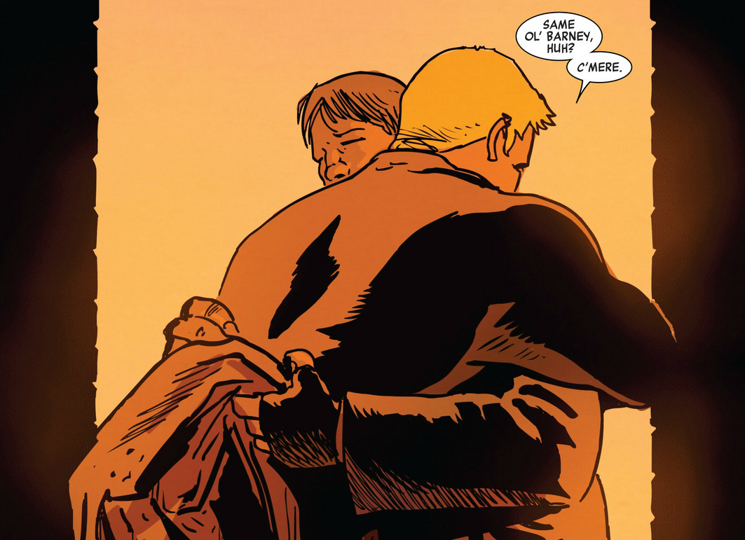 Regardless, it’s a shame that this issue had such unfortunate timing, because it really is an excellent story; it just took me until my second or third read to work past my frustration and realize it. Barney and Clint’s relationship is surprisingly realistic and fascinatingly complex, and after just one issue I’ve become completely invested in it. What’s impressive about that is the fact that, going into this issue, I knew absolutely nothing about Barney besides what the recap page told me: